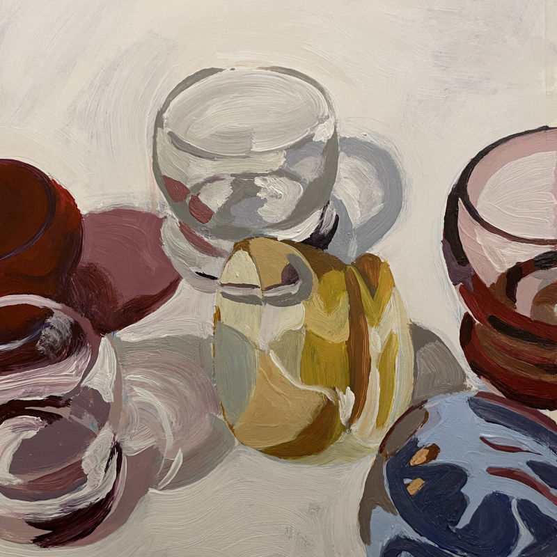 Iedere week schilderen; theorie & praktijk. Soms wat theorie en altijd schilderen! Al schilderend en onderzoekend ga je aan de slag met o.a. toonwaarden (foto hiernaast), kleur, portret, abstraheren, schilderen zoals de Oude Meesters dat deden met onderschildering en opschilderen. Ook is er doorlopend de mogelijkheid om een eigen project te starten waarin ik je begeleid. Je kunt dan bv het geleerde gericht in een eigen idee/schildering gaan gebruiken, maar je kunt natuurijk ook juist iets heel anders gaan doen of onderzoeken!